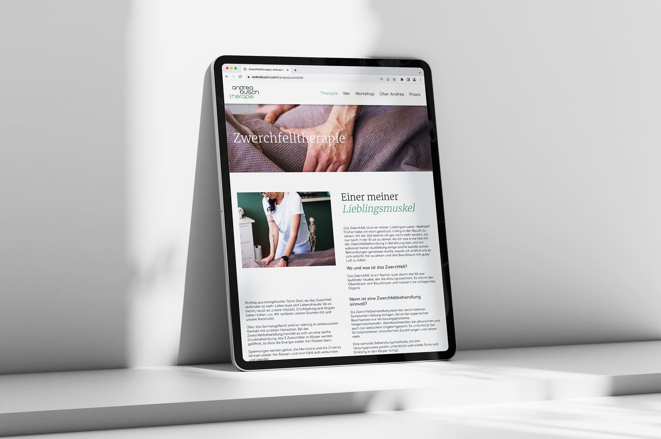 Andreas Spezialgebiete sind die Schmerz-, Dorn- und Zwerchfelltherapie. Mehr Bewegungsfreiheit- weniger Schmerzen. Wir durften Andrea auf dem spannenden Weg zu einem gesamtheitlichen Branding und einer neuen Website begleiten. Als zentrales Element werden die Schmerzpunkte im Logo wie auch als interaktives Element auf der Frontseite der Webgestaltung wieder aufgenommen. Zusammen mit den stimmungsvollen Fotografien von Regina Jäger ein rundum ganzheitlicher, neuer Auftritt.
